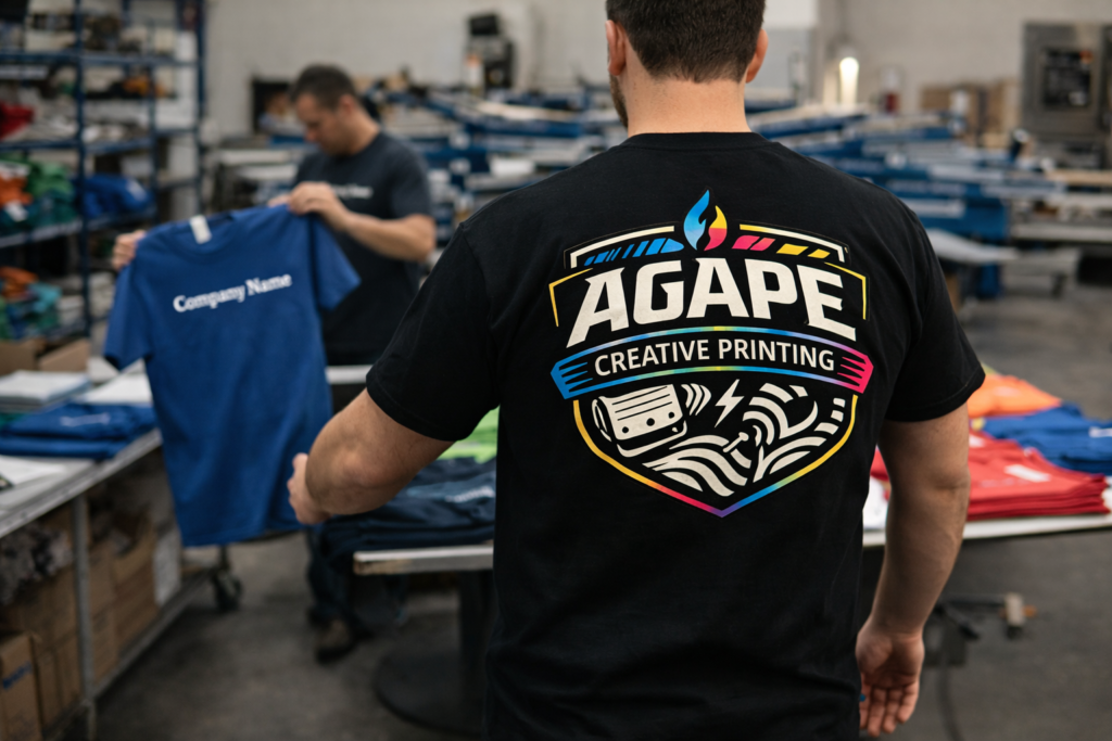 Agape Creative Printing focuses on intentional production and dependable craftsmanship, delivering apparel that looks professional, feels right, and stands out in any setting.
